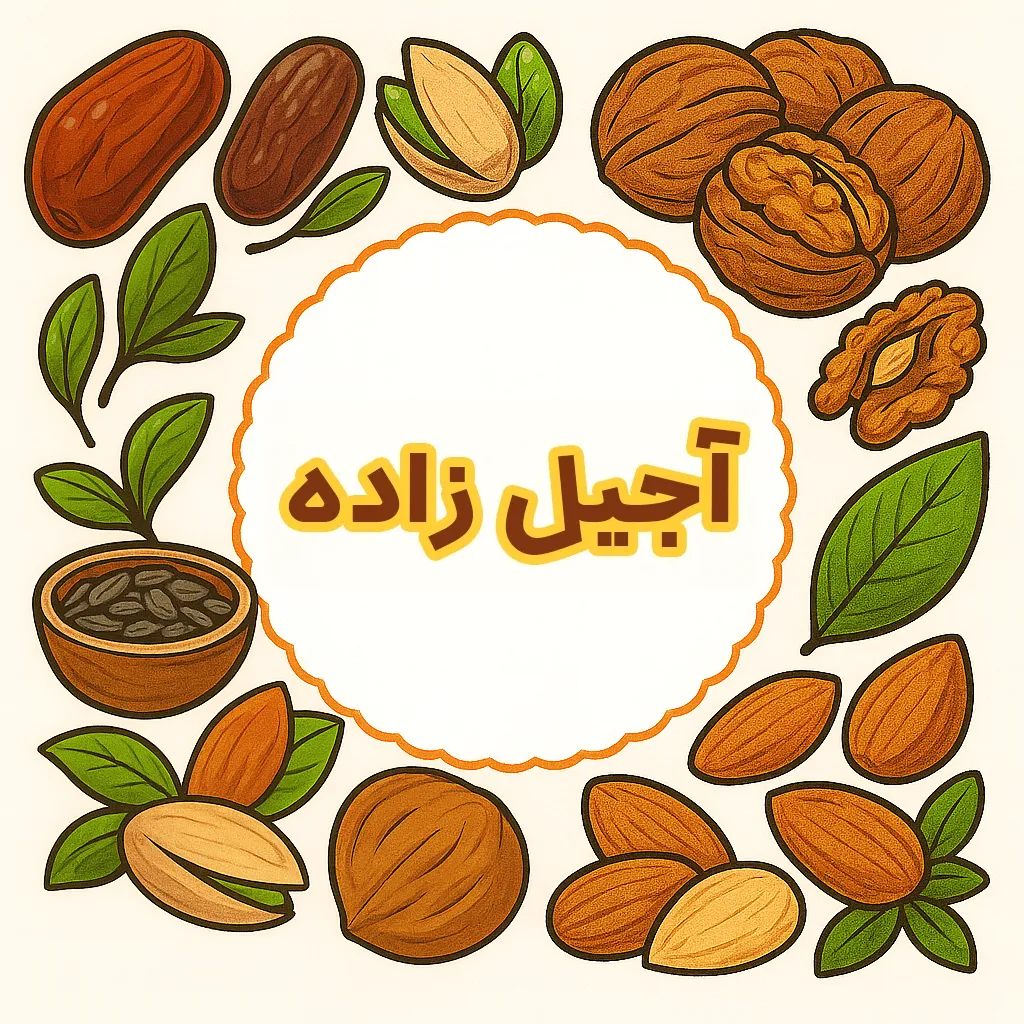 محصولات آجیل زاده: تخمه، پسته، بادامها، گردو، خرما