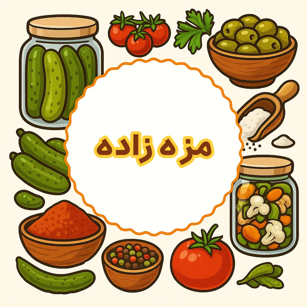 محصولات مزه زاده: ادویه، نمکها، ادویه ترکیبی، رب گوجه فرنگی، خیارشور، زیتون، شور، ترشی